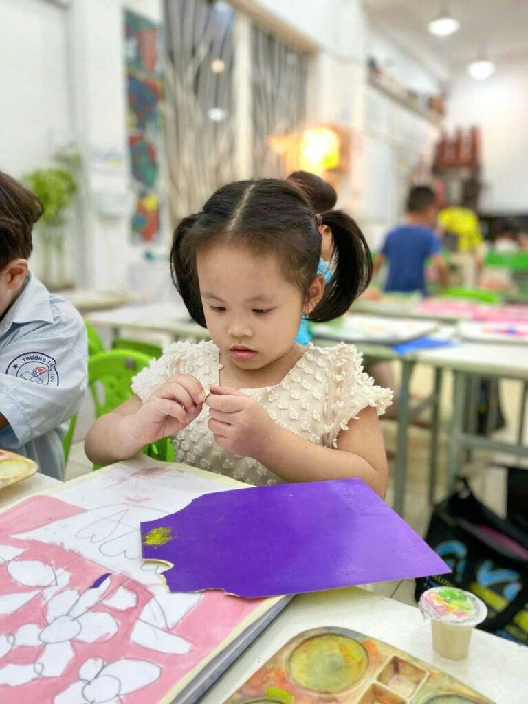 Học Mỹ Thuật tự nhiên–Áp dụng nguyên tắc “Học như chơi – Chơi như học”, giúp trẻ tiếp thu kỹ năng hội họa một cách tự nhiên, ghi nhớ lâu dài qua các hoạt động sáng tạo đa dạng.